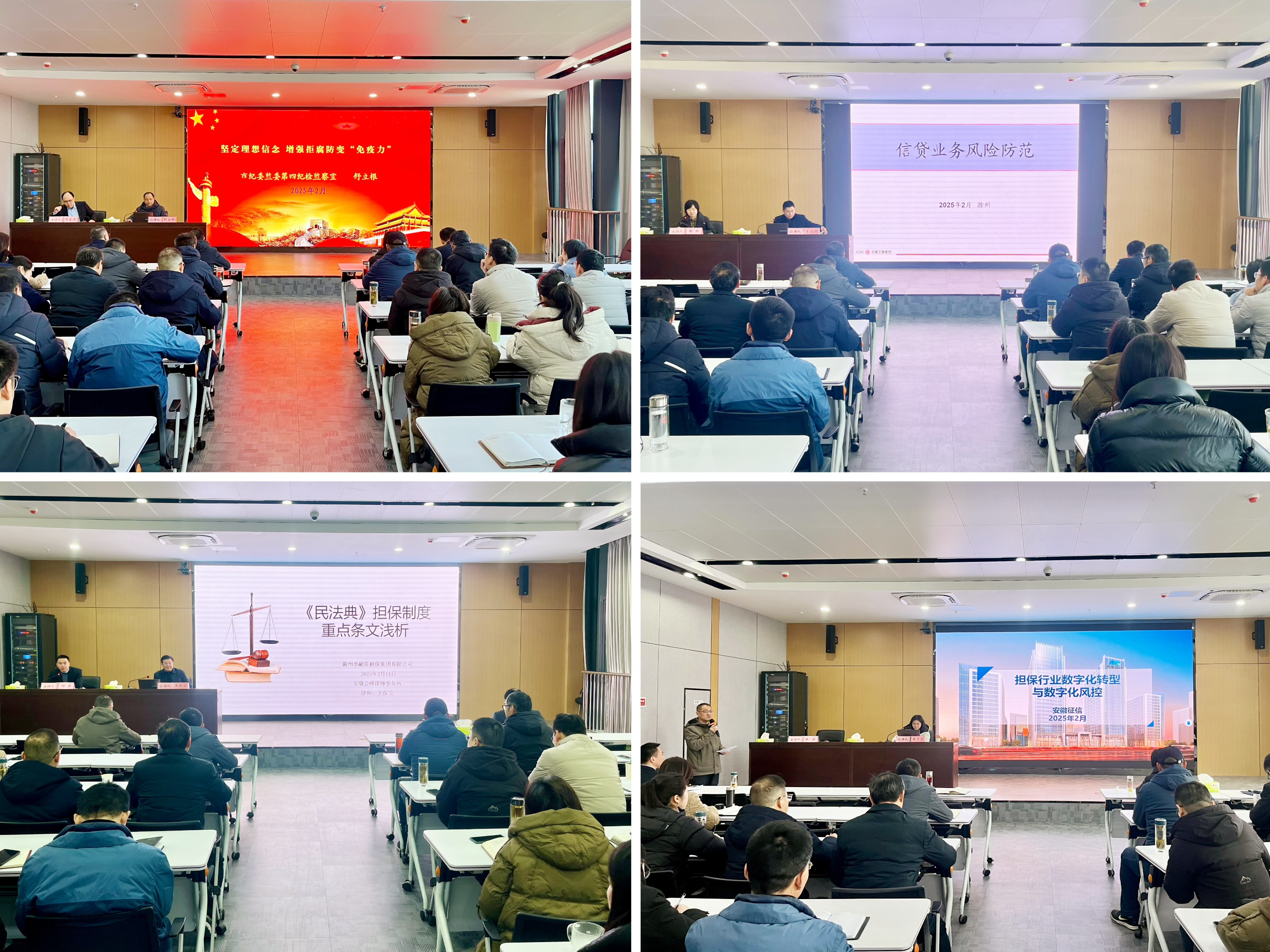 夯實(shí)風(fēng)控基礎(chǔ),筑牢合規(guī)防線。特邀工商銀行滁州分行信貸專家李文順作《信貸業(yè)務(wù)風(fēng)險(xiǎn)防范》專題培訓(xùn),系統(tǒng)解析了銀行業(yè)信貸風(fēng)險(xiǎn)演變規(guī)律及防控體系,為擔(dān)保業(yè)務(wù)全流程風(fēng)險(xiǎn)防控要點(diǎn)及舉措提供了優(yōu)化建議,切實(shí)提升了全員對(duì)預(yù)見(jiàn)、預(yù)防、總結(jié)業(yè)務(wù)風(fēng)險(xiǎn)的能力水平。會(huì)峰律師事務(wù)所王保安律師以《民法典擔(dān)保制度重點(diǎn)條文淺析》為題,重點(diǎn)對(duì)“物權(quán)法”中涉及擔(dān)保抵押業(yè)務(wù)的法條進(jìn)行了細(xì)致解讀,并深入擔(dān)保業(yè)務(wù)場(chǎng)景以案釋法,幫助全體職工研判形勢(shì)變化,識(shí)別防范新法律風(fēng)險(xiǎn)。