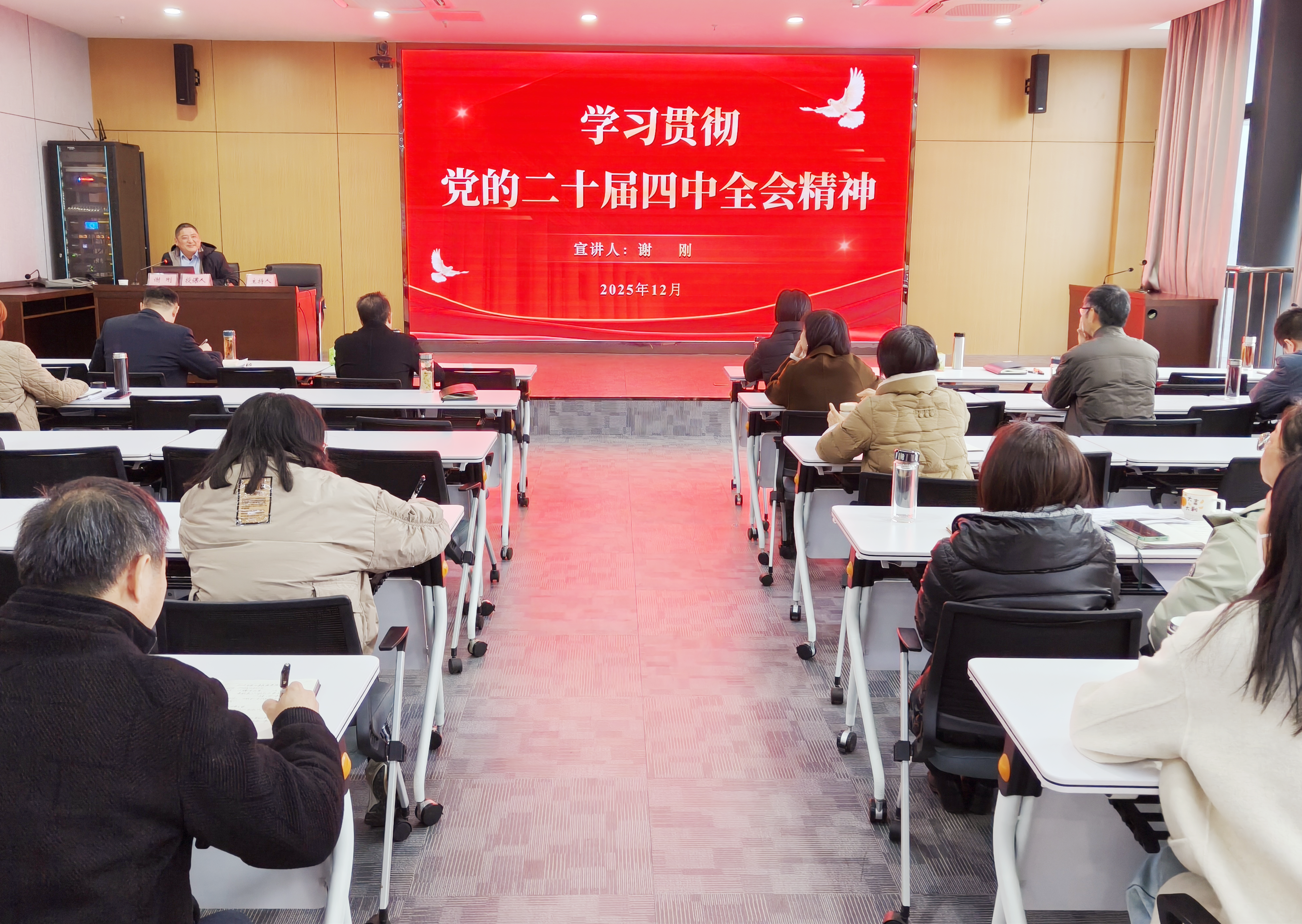 為進一步學習好、宣傳好、貫徹好黨的二十屆四中全會精神,把思想和行動迅速統(tǒng)一到黨中央的決策部署上來,12月22日,市擔保集團舉行“舉旗幟·送理論”學習貫徹黨的二十屆四中全會精神專題宣講報告會,邀請滁州廣播電視大學黨委委員、副校長謝剛作專題宣講報告,集團及子公司全體干部職工參加學習。 報告系統(tǒng)闡釋了黨的二十屆四中全會的重大歷史意義、核心精神實質和實踐要求,重點解讀了“十五五”時期發(fā)展指導方針、主要目標和戰(zhàn)略任務,并結合近期中央政治局會議及中央經(jīng)濟工作會議,為國有企業(yè)如何貫徹落實全會精神、把握經(jīng)濟大勢、融入國家戰(zhàn)略提供了細致的解讀與指導,宣講內容實踐性強、啟發(fā)性足。 會議強調,學習貫徹全會精神,貴在理解、重在落實,集團全體干部職工要以此次報告會為契機,在深化學習、融會貫通、擔當實干上持續(xù)用力,切實把學習成果轉化為攻堅克難、推動發(fā)展的具體行動,全力完...